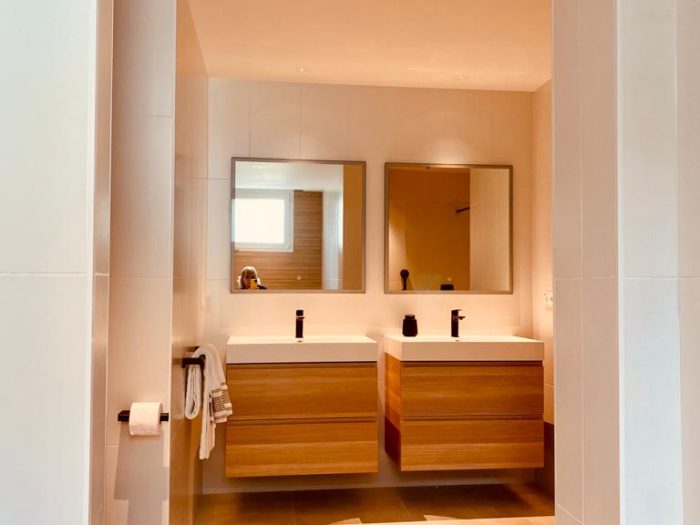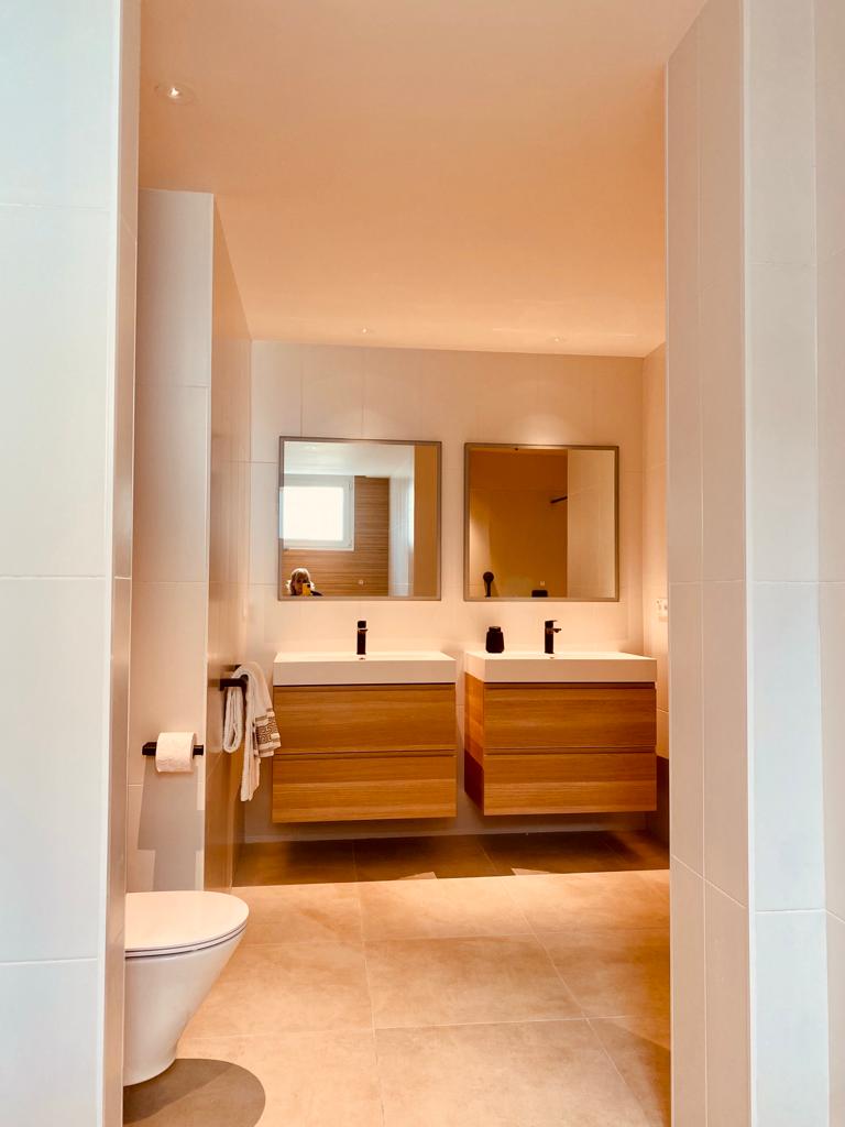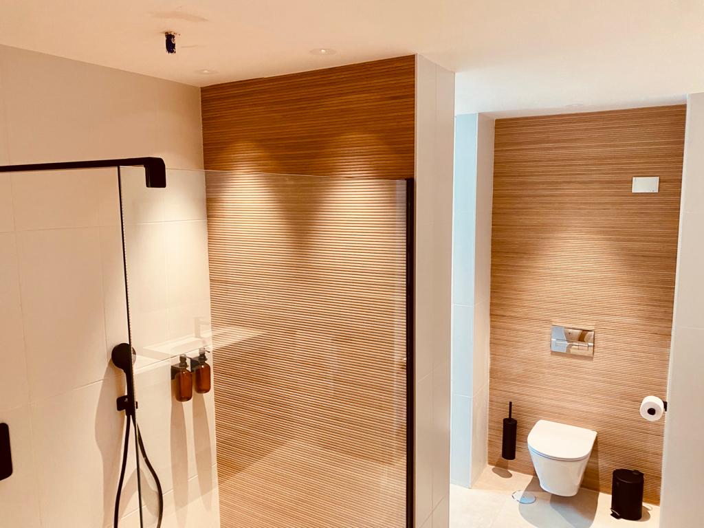 - Iedere badkamer heeft een douche, wc en wastafel. De badkamer in het souterrain heeft ook een ruim bad.